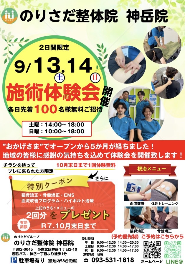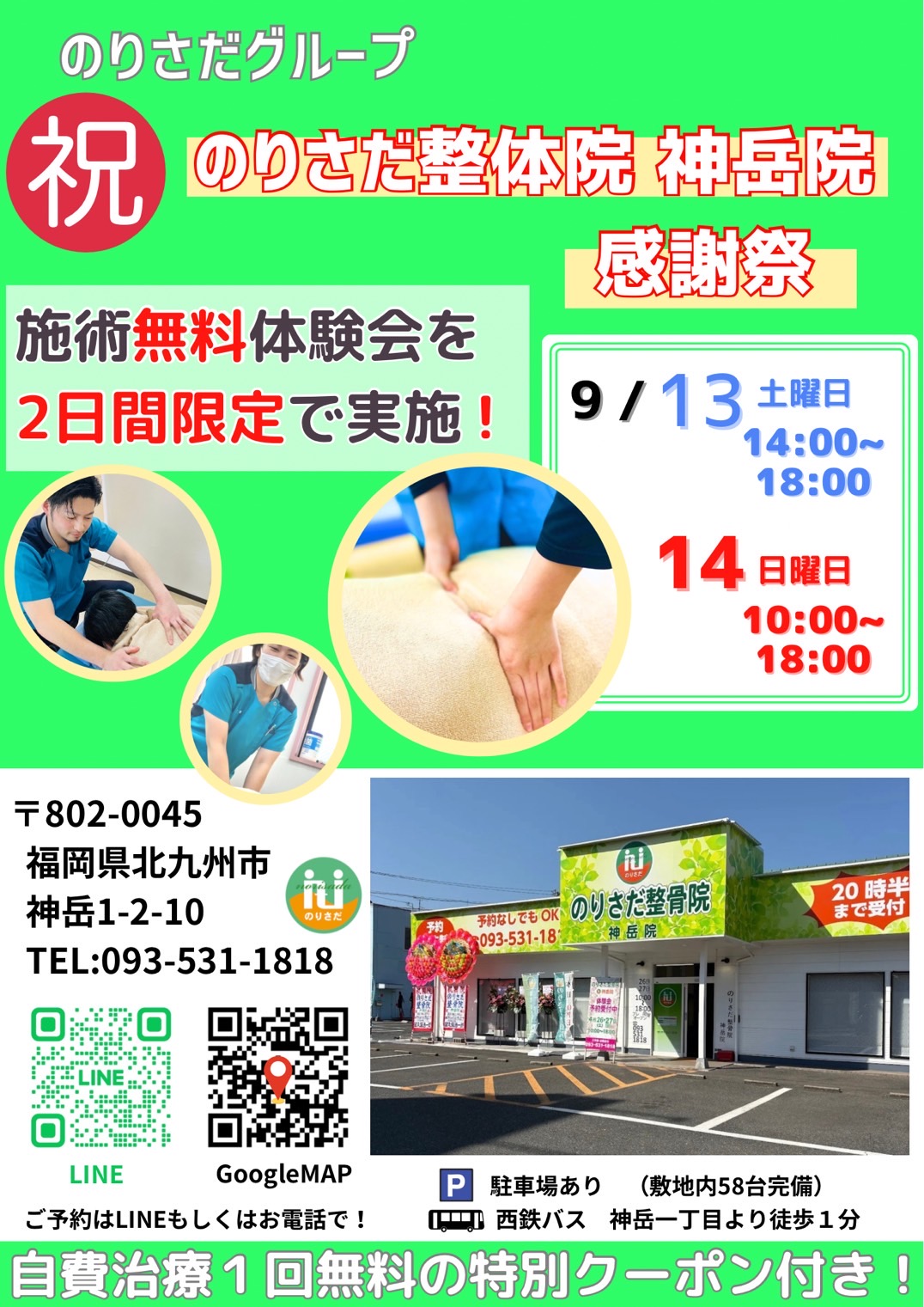 【㊗️のりさだ整骨院 神岳院 ハーフアニバーサリー無料施術体験会🎉】